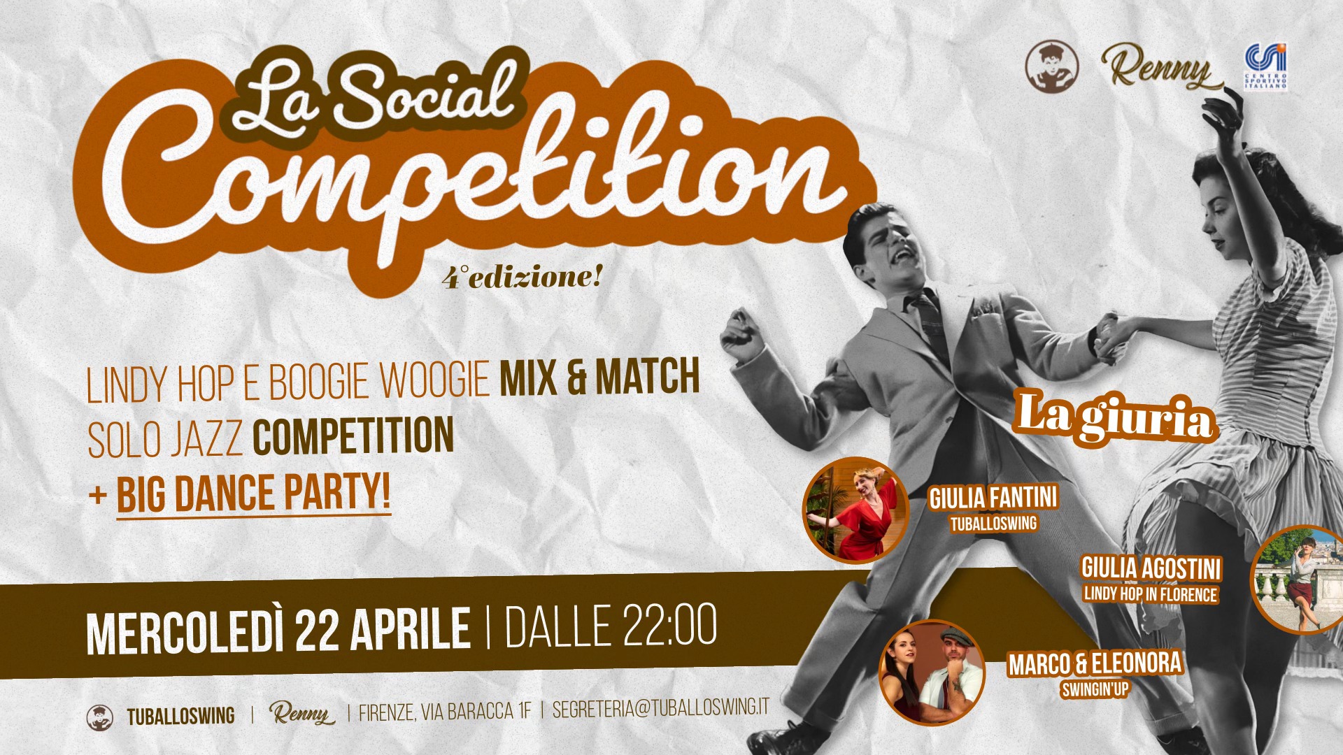 Renny Firenze via Francesco Baracca 1, FirenzeMercoledรฌ ๐๐ ๐๐ฉ๐ซ๐ข๐ฅ๐ ๐ญ๐จ๐ซ๐ง๐ ๐๐ ๐๐จ๐๐ข๐๐ฅ ๐๐จ๐ฆ๐ฉ๐๐ญ๐ข๐ญ๐ข๐จ๐ง con ๐๐๐ ๐๐๐๐๐ Una competizione per ogni disciplina (๐๐ข๐ง๐๐ฒ ๐๐จ๐ฉ, ๐๐จ๐จ๐ ๐ข๐ ๐๐จ๐จ๐ ๐ข๐, ๐ ๐๐จ๐ฅ๐จ ๐๐๐ณ๐ณ) in cui mettersi in gioco senza tralasciare l'ironia e l'atmosfera familiare che caratterizza ogni Social Dance al Renny....
