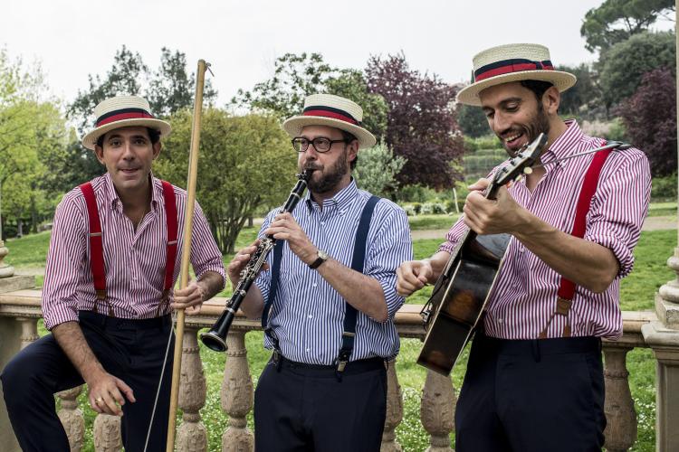 I Citofoni, un trio che esegue standard del jazz anteguerra e canzoni in italiano, inglese e francese. È una formazione molto originale (chitarra e voce, bidone e voce, sassofono/clarinetto) e vestiti in stile, paglietta compresa! Giulio - Voce e Chitarra...