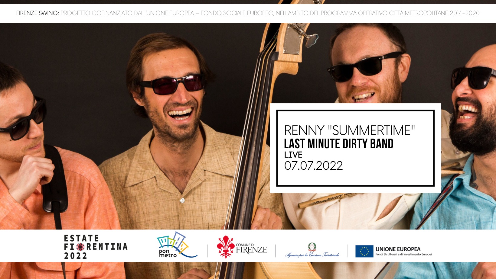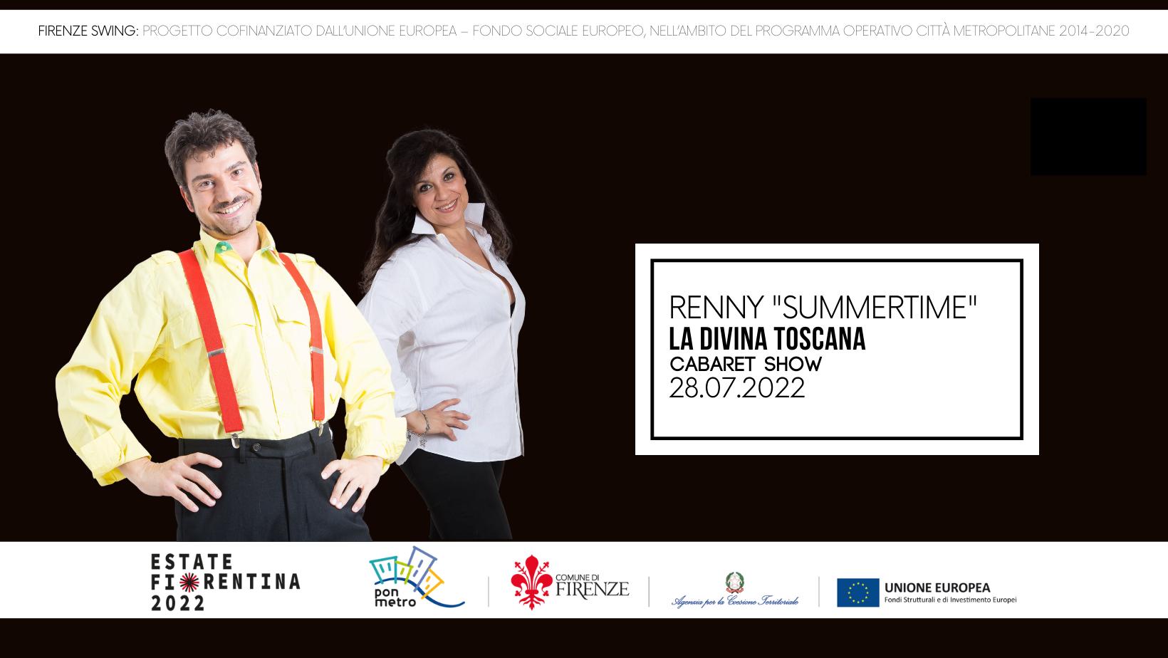 Giovedì 28 Luglio ore 21.30 LA DIVINA TOSCANA Cecco & La Nigiri --------------------------------- Sketch, Stornelli Fiorentini e proiezione di cortometraggi comici --------------------------------- Ingresso gratuito --------------------------------- RENNY SUMMERTIME - FIRENZE SWING “Il progetto è stato cofinanziato dall’Unione Europea – Fondo Sociale...