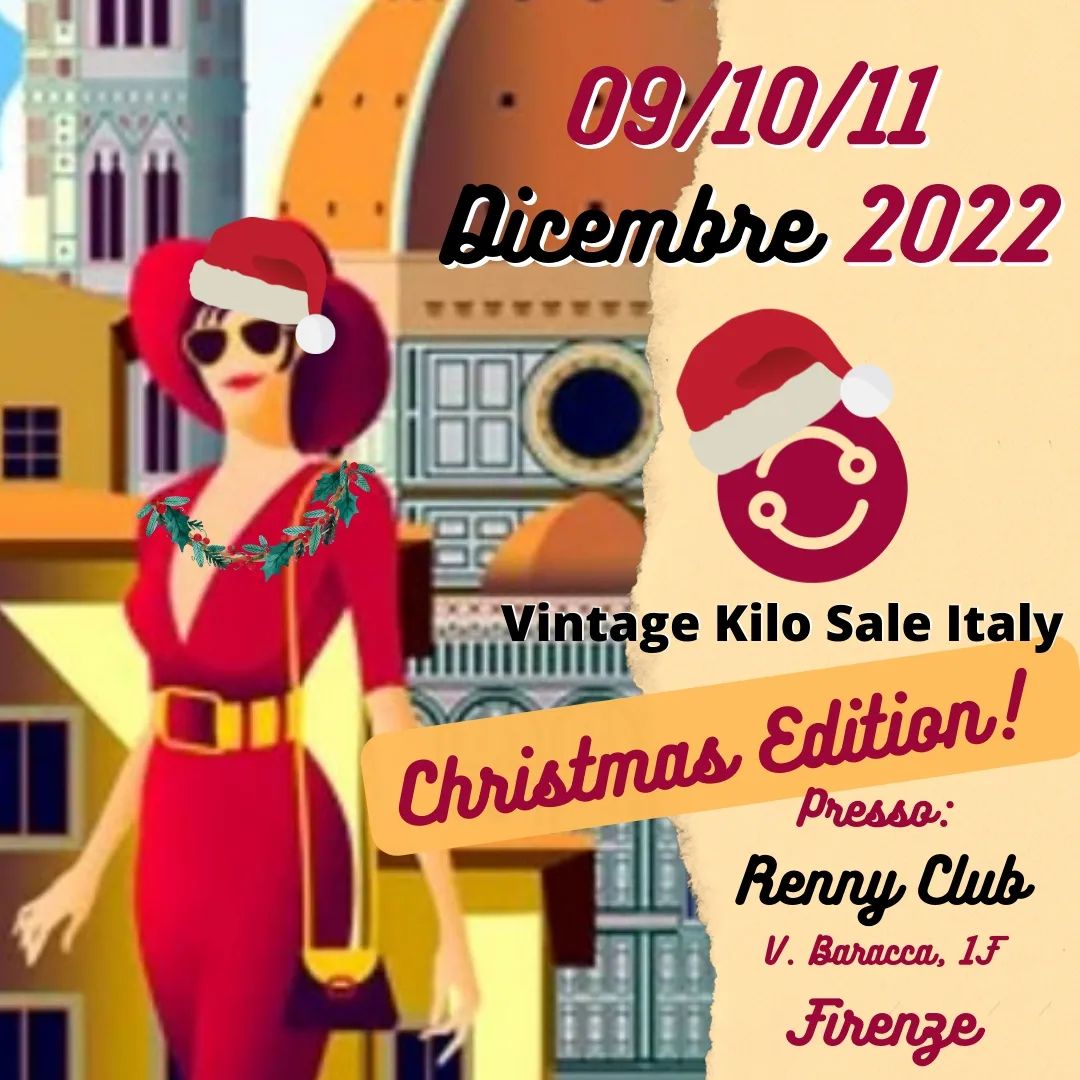 VINTAGE KILO SALE ITALY - FIRENZE - CHRISTMAS EDITION Il Biglietto é valido per tutti e tre i giorni dell'evento!! Ingresso Gratuito! Venerdì 9 Dicembre dalle ore 10.00 alle ore 20.00 Sabato 10 Dicembre dalle 10.00 alle 20.00 Domenica 11...